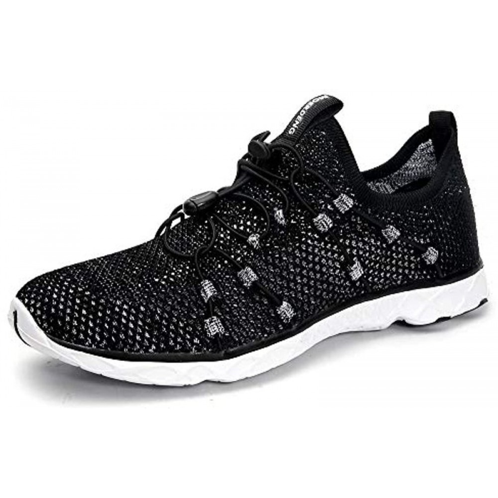Men's Quick Drying Water Shoes Lightweight Aqua Shoes for Sports Outdoor Beach Pool Exercise Black-White