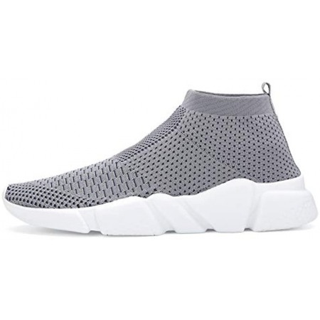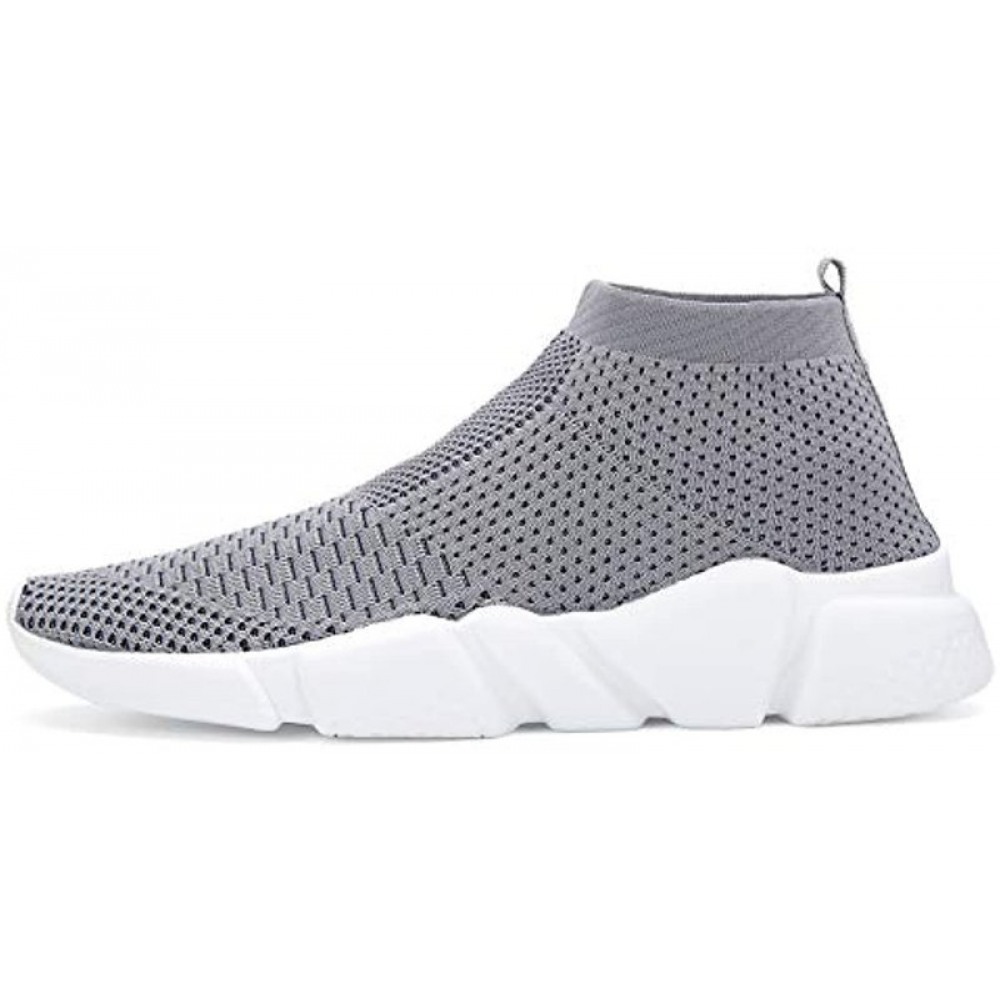 Men's Running Shoes Breathable Knit Slip On Sneakers Lightweight Athletic Shoes Casual Sports Shoes High Top White